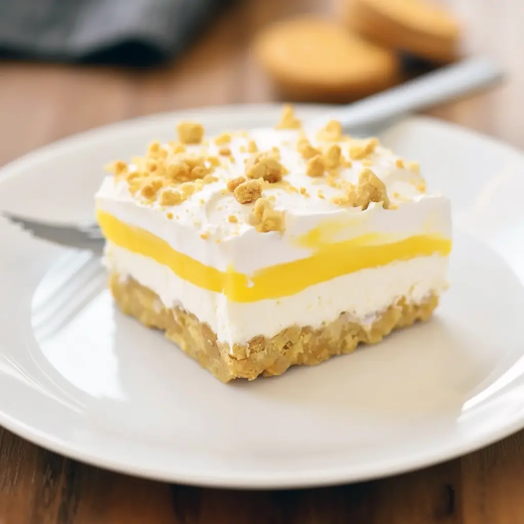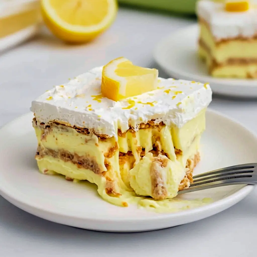 A breezy, no-bake lemon layered cake made with instant lemon pudding, milk, whipped topping, and graham crackers. Chill until set for bright, creamy slices — perfect for warm-weather gatherings.