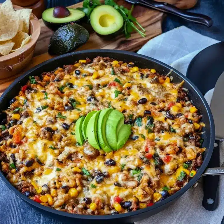 A fast, protein-rich Mexican-inspired skillet loaded with lean ground beef, black beans, sweet corn, seasoned rice, and gooey shredded cheese. Ready in under 30 minutes and made entirely in one pan — simple, satisfying, zero drama.